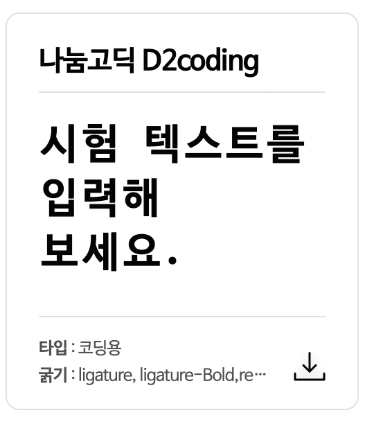 네이버가 2008년도에 만든 글꼴입니다. 코딩에도 많이 애용하는 D2coding 도 있습니다.