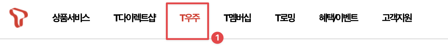 2. 가입후 상단메뉴에서 T우주 를 선택 > 관리 에 들어갑니다.