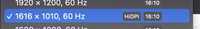 해당프로그램 설치에는 1616 x 1010 부분에 HiDPI 가 없어서 부옇게 보였습니다.