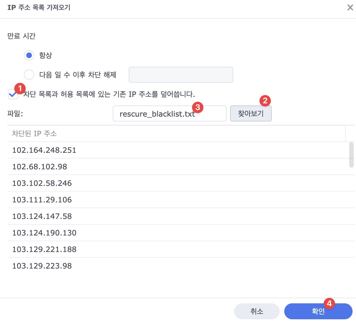 그래도 계속 접속 시도를 하고 있는것 같아서 원천적으로 ip차단을 하면