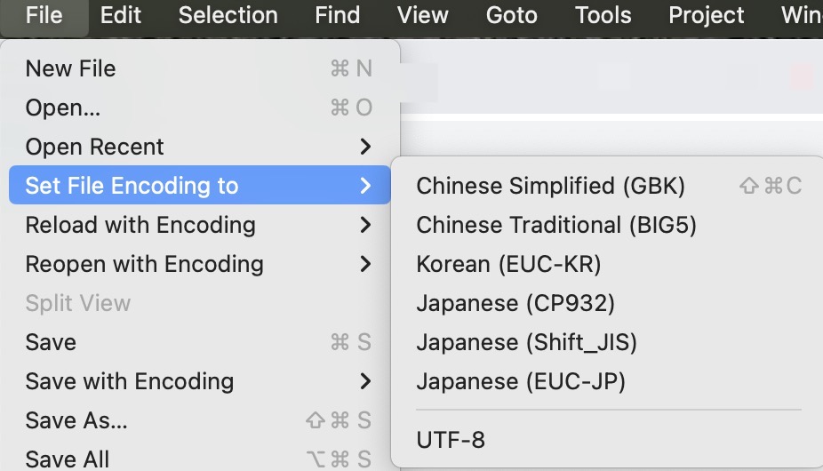 A Sublime Text 2 & 3 plugin for editing and saving files encoded in GBK, BIG5, EUC-KR, EUC-JP, Shift_JIS, etc. - GitHub - seanliang/ConvertToUTF8: A Sublime Text 2 & 3 plugin for editing an...