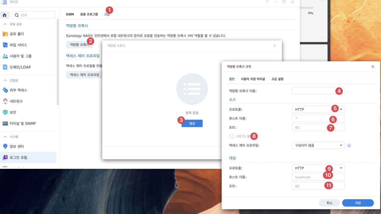 시놀로지 7.0 이상 리버스 프록시 설정 방법