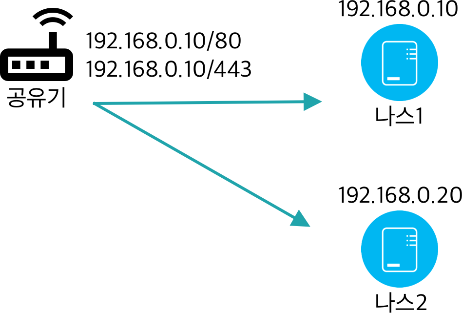 1. 공유기에서 적용시킨 80번 포트와 443 포트 사용하는 나스에서 역방향 프록시를 적용할 수 있다.