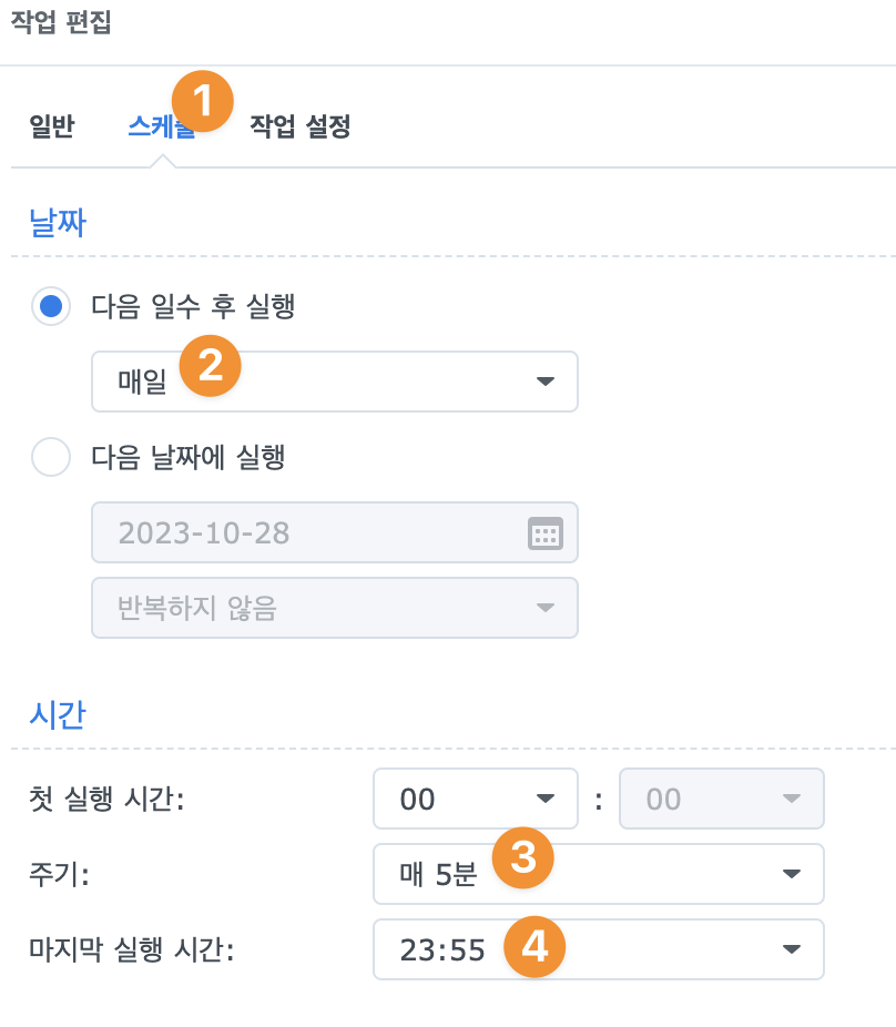 (갱신 : 위 스크립트로 변경하면 5분 단위로 설정하지 않으셔도 됩니다.