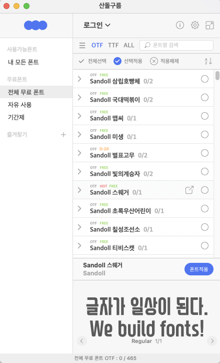 이렇게 저작권에 무료로 사용할 수 있는 폰트가 많이 있으니