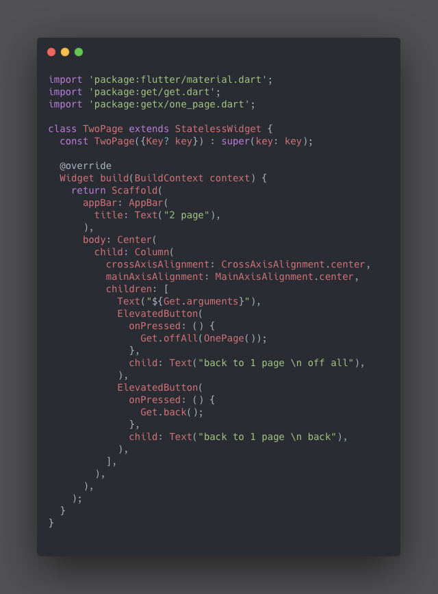 즉, Get.off 는 페이지를 1개 지우고 이동합니다. 하지만 이럴 경우 Get.back 으로 돌아갈 수는 없습니다.