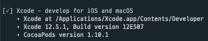 Terminal에서 flutter doctor -v를 하여서 CocoaPods 설치 유무를 확인합니다.
